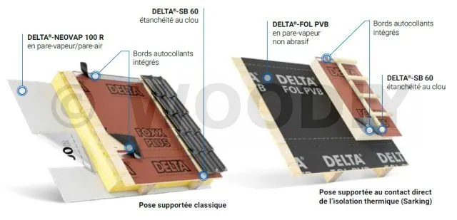 DELTA®-FOXX PLUS : Ecran de sous-toiture - spécial MONTAGNE - bords autocollants - 1.50 x 50m - Réf. 02202728