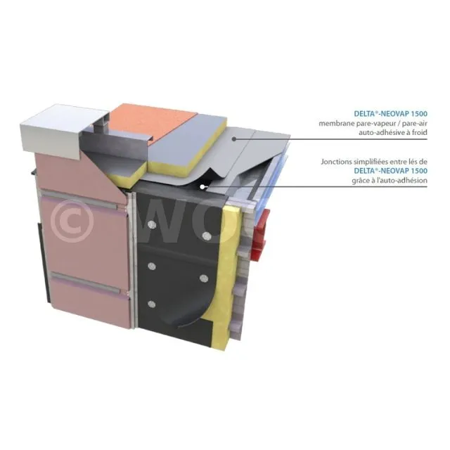 DELTA® -NEOVAP 1500 : Membrane d’étanchéité à l’air auto-adhésive et fortement étanche à la vapeur d’eau - 1.08x60m - CDT : Rouleau de 60m (64.8m²) - Réf. 02207463