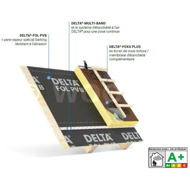 - Poser DELTA FOL PVB en association avec le système d’étanchéité à l’air et à la vapeur d’eau.