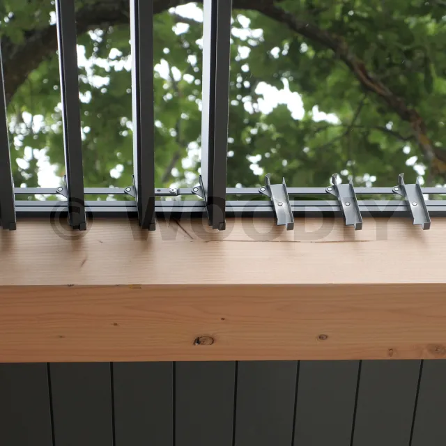 ATTENTION : Pour une utilisation avec du bois, les lames doivent être d’un mètre maximum. Proscrire les essences instables ou avec des nœuds importants. Utiliser des bois stables type Red Cedar de qualité menuiserie ou bien prenez des lames en Douglas. Prendre le calibrage de nos lames et surtout pensez à laisser de la dilatation.