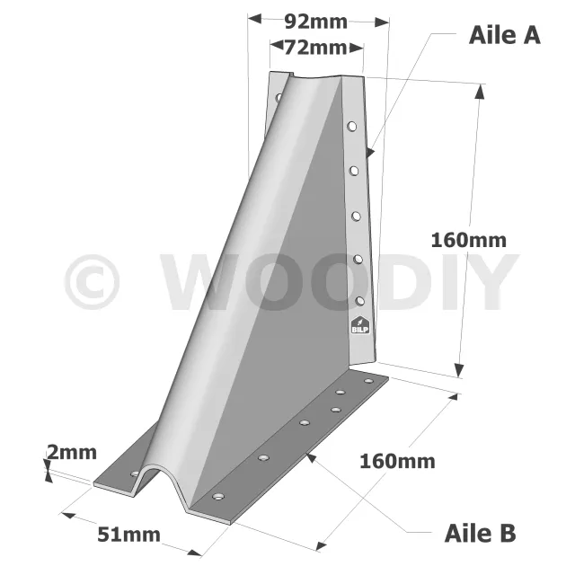 | Références | Dimensions [mm] | Perçages Aile A | Perçages Aile B | |||||