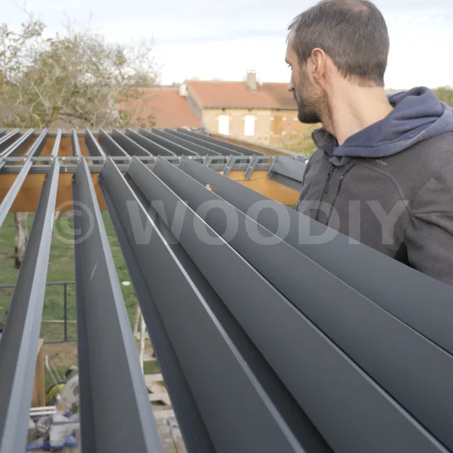 La première étape consiste à préparer le terrain et à marquer les emplacements des poteaux. Une fois les fondations prêtes, on passe à l’assemblage du cadre supérieur avant de fixer les lames en aluminium. Grâce à notre pack comprenant toutes les instructions détaillées, chaque étape est clairement expliquée pour faciliter le processus.