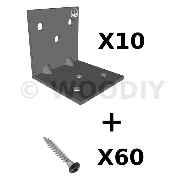 - Vis CSA5.0X35PB (60 fournies par blister pour 10 équerres).