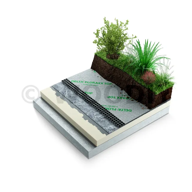 - Le DELTA®-FLORAXX TOP est une solution de drainage pour toitures végétalisées intensives, semi-intensives et extensives. Équipé d’alvéoles de 20 mm et d’un géotextile intégré, il assure une évacuation efficace de l’eau sur tous les types de toitures plates, isolées, non isolées ou inversées.