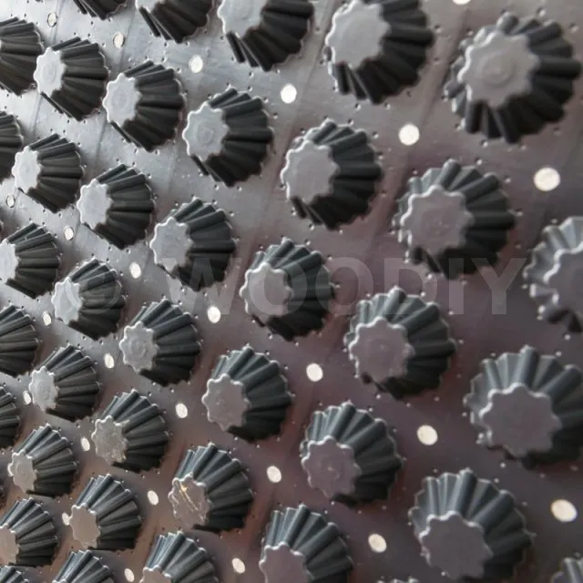 - Les alvéoles octogonales permettent de stocker jusqu’à 7 litres/m² d’eau, l’excédent d’eau s’écoule ensuite sous la membrane via les perforations entre les alvéoles. La membrane est écologique et résistante aux produits chimiques, aux bactéries, aux substances alcalines et aux racines.