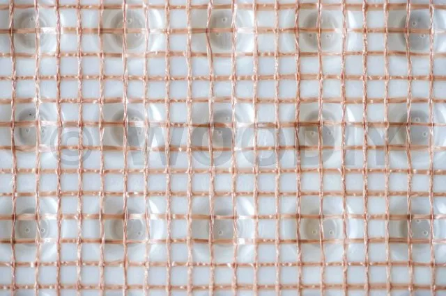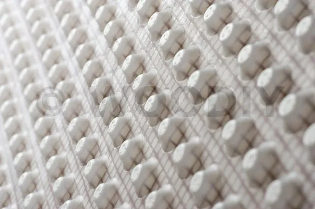 - MatériauNappe à excroissances en polyéthylène haute densité associée à un treillis en polyéthylène brun.