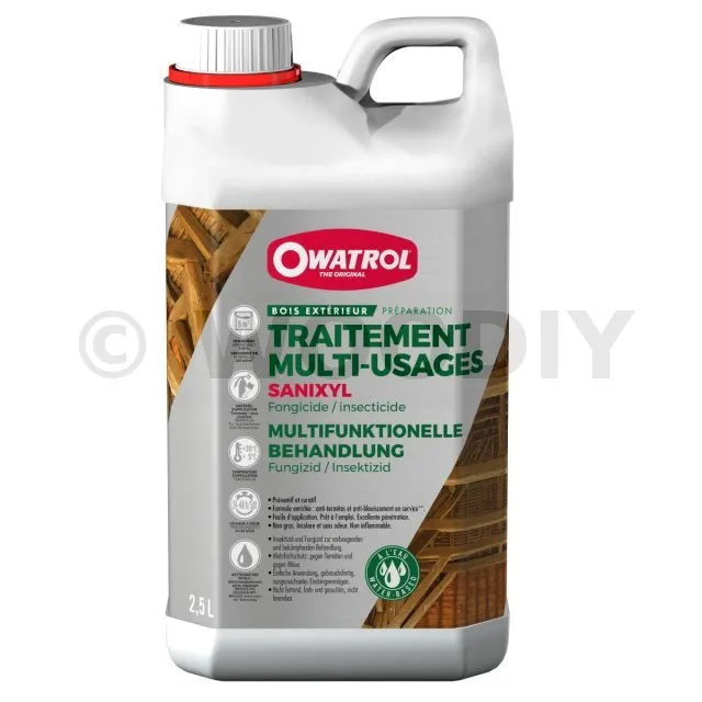 Produit réversible : s’il vient à geler, il suffira d’agiter SANIXYL pour retrouver toute son efficacité. - RendementPréventif : 5 m²/L ; Curatif : 3 m²/L.