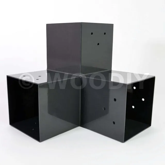Il est utilisé dans un angle extérieur. Ce connecteur va permettre de raccorder une grosse poutre 120x120mm perpendiculairement à une poutre 120x120mm, le tout étant supporté par un poteau vertical 120x120mm.