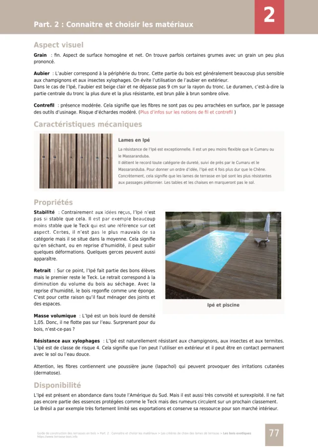 - Quelles essences de bois pouvez-vous utiliser pour votre terrasse ? il y en a plus de 50. Quelles sont leurs caractéristiques ? leurs prix ? leurs faiblesses ?