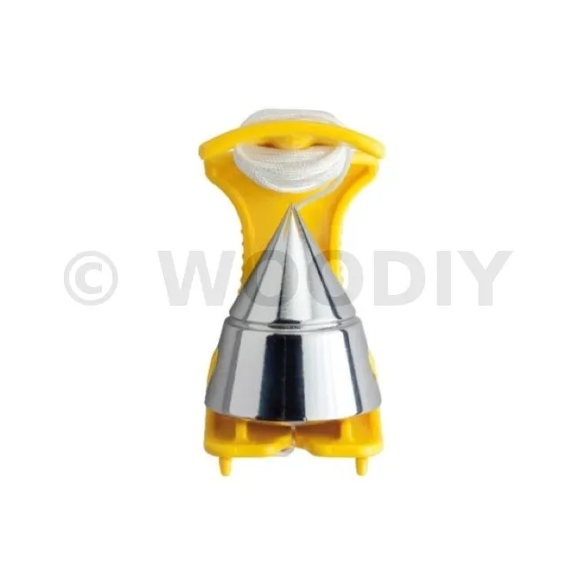 - d’une monture en polymère perforée de couleur jaune vif. La perforation permet de le fixer à une vis, des clous ou autres et de libérer la main de l’utilisateur, tandis que la couleur facilite son identification sur le chantier.
