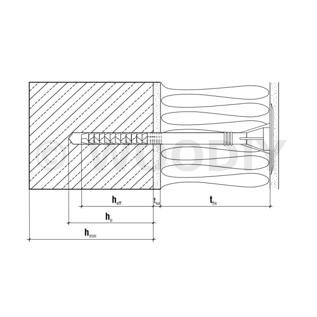 - Profondeur d’ancrage (hef)70mm