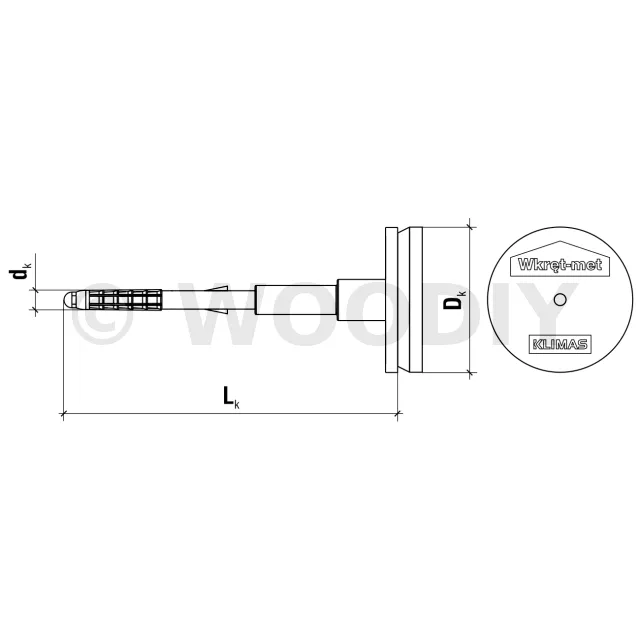 Cheville d’isolation à visser avec clou métal et rondelle d’appui télescopique - Diamètre 8mm - Réf. ECODRIVE-S-08390(100)