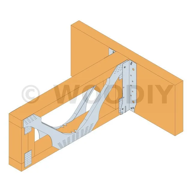 - Cette languette peut être pliée vers le haut pour les cas où le bas de solive n’est pas aligné sur le support.