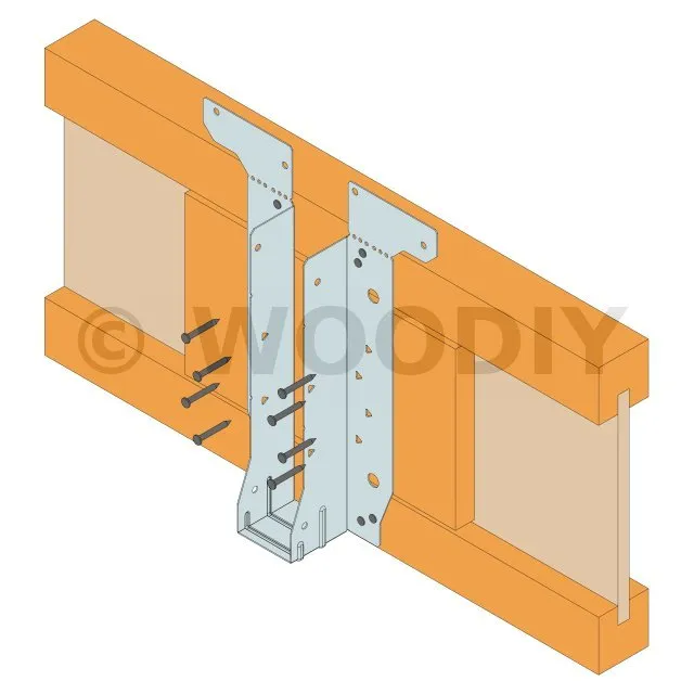 5. Insérer la solive portée en s’assurant qu’elle soit bien serrée contre l’arrière de l’étrier (l’écart maximal autorisé est de 3 mm) et remplir tous les trous ronds des brides latérales,