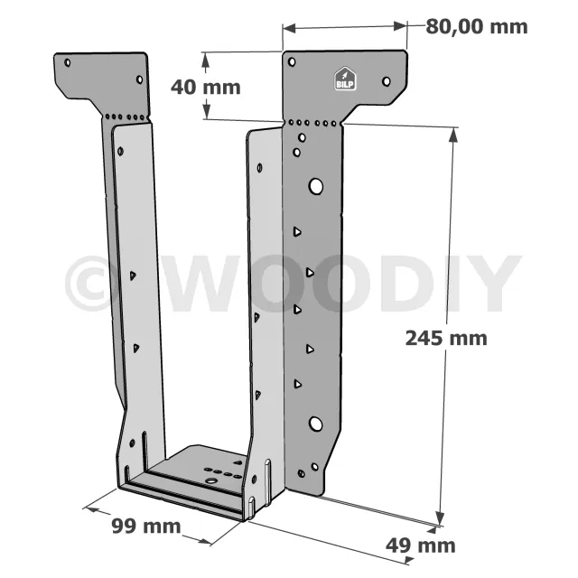 | Ø5 | Perçages triangulaires | Ø8 | Ø5 | Perçages triangulaires | Béton C20/25 | Poutre en I LVL 36 mm | Poutre en I LVL 39 mm | Poutre en I bois massif 45 mm | LVL, lamellé-collé, bois massif | Ame métallique | |