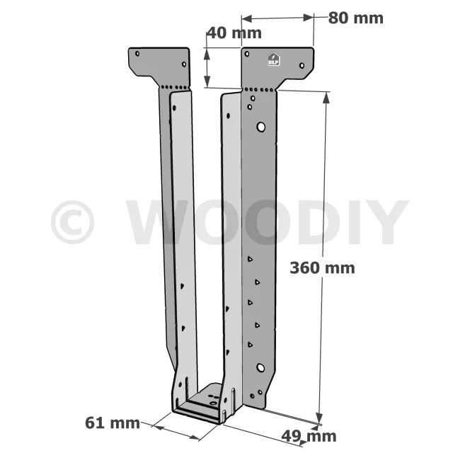 - Étrier fourni avec ses brides supérieures droites, pliables sur chantier afin de s’adapter à toutes les hauteurs de solives,