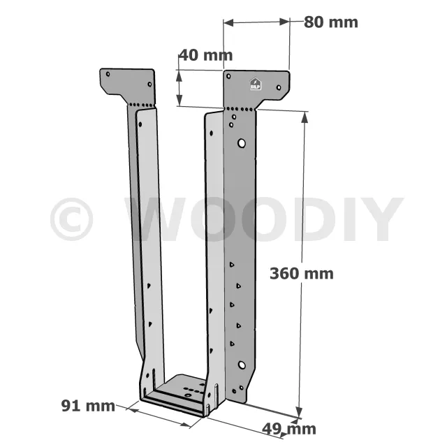 - Étrier fourni avec ses brides supérieures droites, pliables sur chantier afin de s’adapter à toutes les hauteurs de solives,