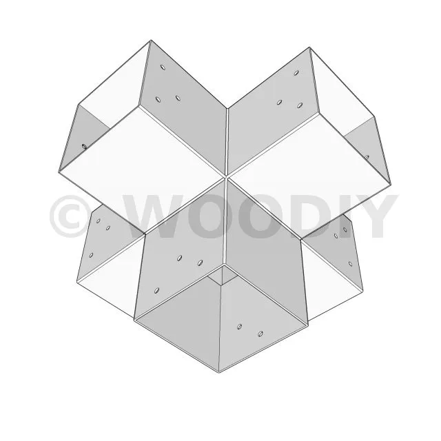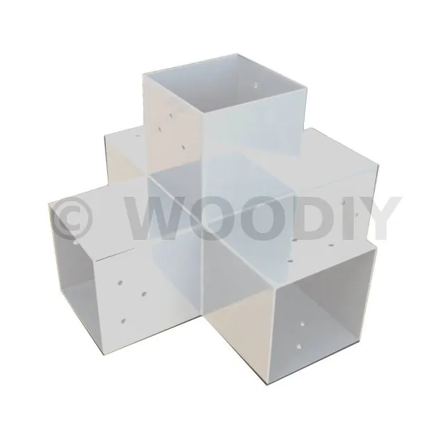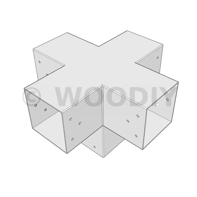 Il permet de raccorder deux poutres 120x120mm perpendiculairement à une autre poutre 120x120mm, le tout étant supporté par un poteau vertical de 120x120mm.