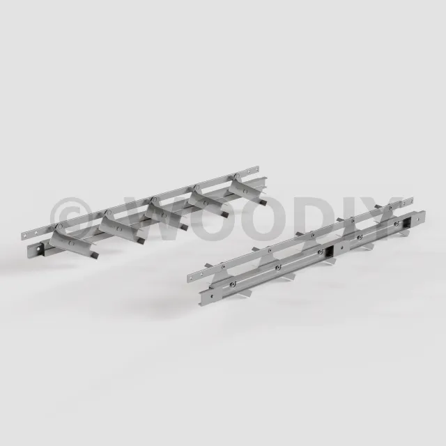 Distance entre les supports : À supposer que le mécanisme est fixé entre deux poutres, la distance entre ces deux poutres doit être égale à la longueur des lames + 35mm : 2 X 15mm (largeur du corps de mécanisme) + 5mm de jeu.
