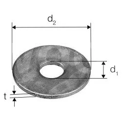 | Références | Diamètre intérieur d1 [mm] | Diamètre extérieur d2 [mm] | Épaisseur t [mm] |