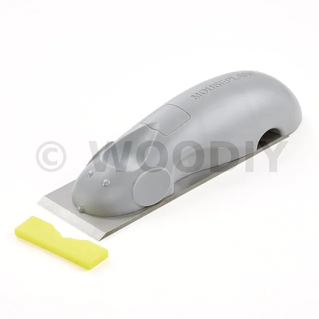 Le Mouseplane® est un outil pratique spécialement conçu pour faciliter l’élimination des excès de colle et de bois, ce qui permet d’éviter de longues heures de ponçage. Pendant le travail, il est possible de placer la protection en plastique jaune de la lame sur le côté dans la poignée, puis de la retirer et de la remettre en place sur la lame après le travail.