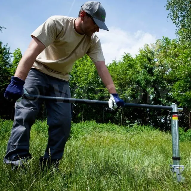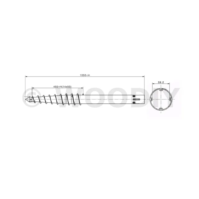 - à l’une des extrémités une pointe “harpon” surmontée d’une partie en spirale pour pouvoir creuser le sol,