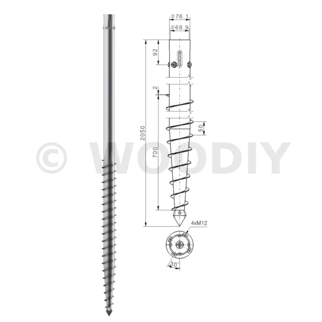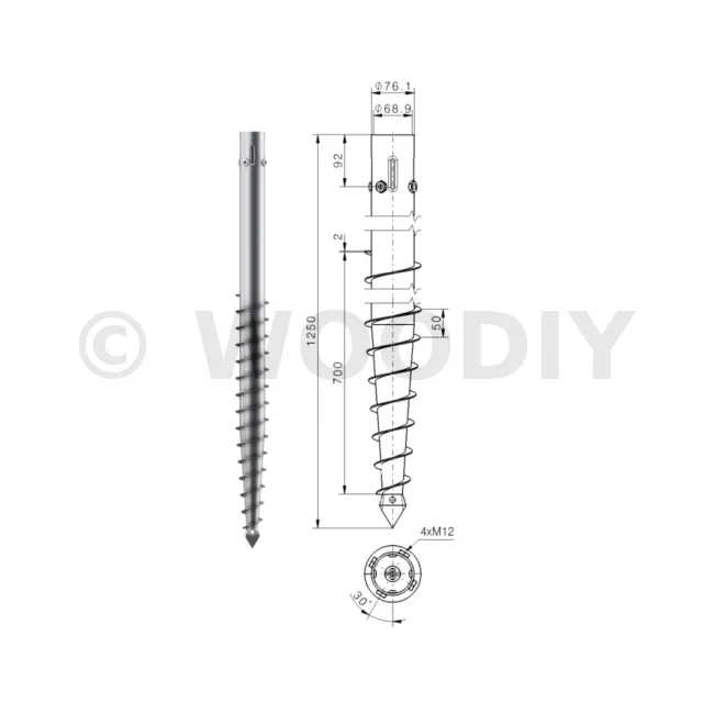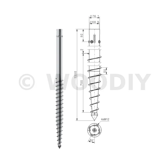 Une vis de fondation est donc composée d’un axe central avec :