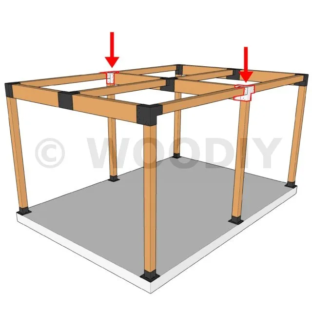 Il permet de raccorder deux poutres 120x120mm perpendiculairement à une grosse poutre 240x120mm, le tout étant supporté par un poteau vertical 120x120mm.