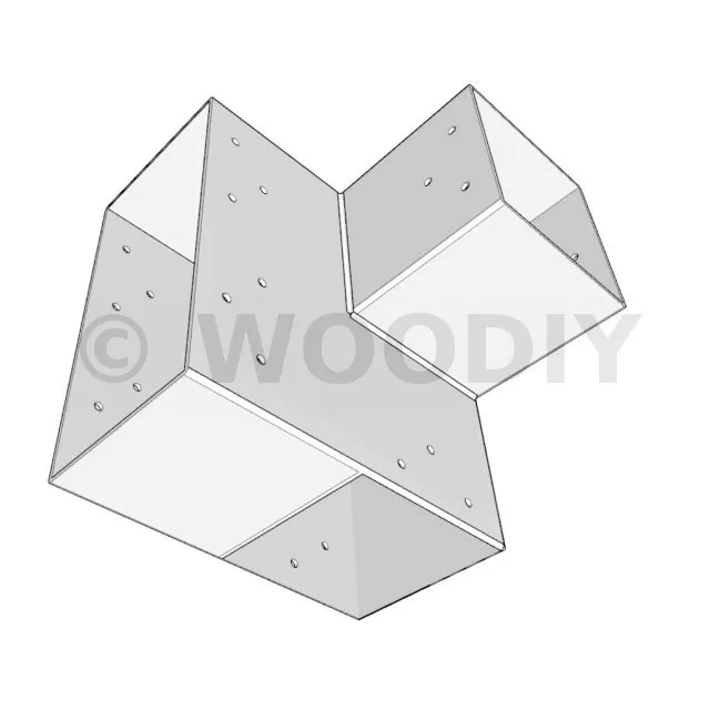 Il est utilisé dans un angle extérieur. Ce connecteur va permettre de raccorder une grosse poutre 240x120mm perpendiculairement à une poutre 120x120mm, le tout étant supporté par un poteau vertical 120x120mm.