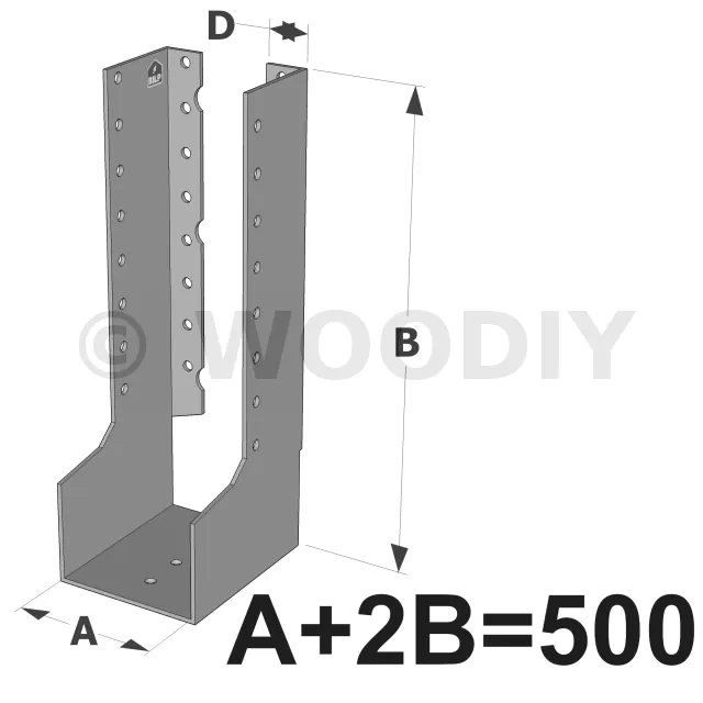 On admet une tolérance de 2 mm maximum entre l‘épaisseur du bois et la largeur du sabot. Exemple : un sabot plié à 76 mm peut porter une épaisseur de bois de 74 mm.