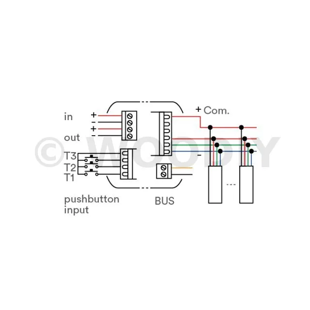 - Il est possible de réunir des dispositifs esclaves version BUS (maximum 40) pour répéter les fonctions du maître