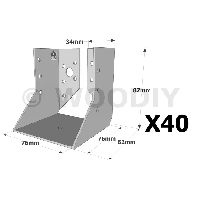 On admet une tolérance de 2 mm maximum entre l‘épaisseur du bois et la largeur du sabot. Exemple : un sabot plié à 76 mm peut porter une épaisseur de bois de 74 mm.