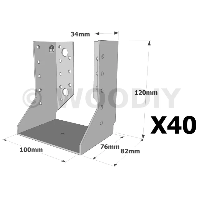 On admet une tolérance de 2 mm maximum entre l‘épaisseur du bois et la largeur du sabot. Exemple : un sabot plié à 76 mm peut porter une épaisseur de bois de 74 mm.