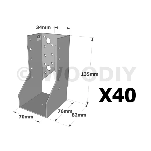On admet une tolérance de 2 mm maximum entre l‘épaisseur du bois et la largeur du sabot. Exemple : un sabot plié à 76 mm peut porter une épaisseur de bois de 74 mm.