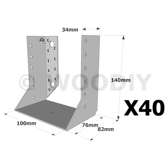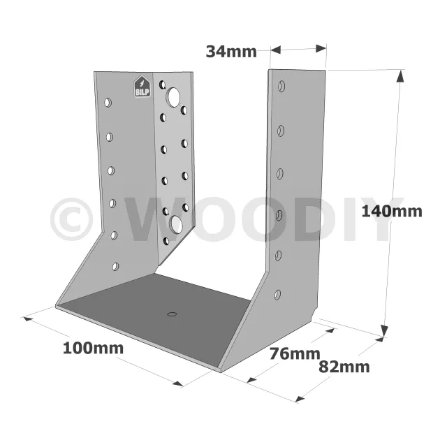 On admet une tolérance de 2 mm maximum entre l‘épaisseur du bois et la largeur du sabot. Exemple : un sabot plié à 76 mm peut porter une épaisseur de bois de 74 mm.