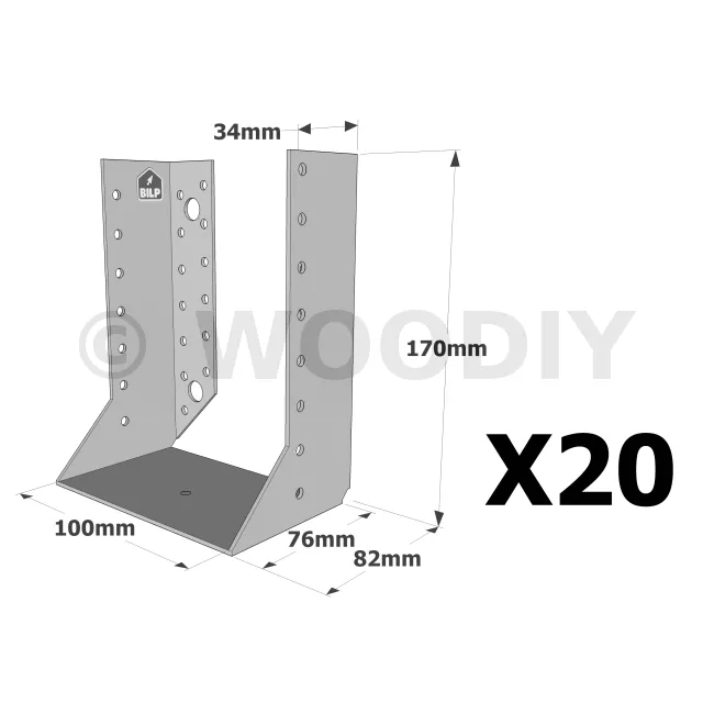 On admet une tolérance de 2 mm maximum entre l‘épaisseur du bois et la largeur du sabot. Exemple : un sabot plié à 76 mm peut porter une épaisseur de bois de 74 mm.