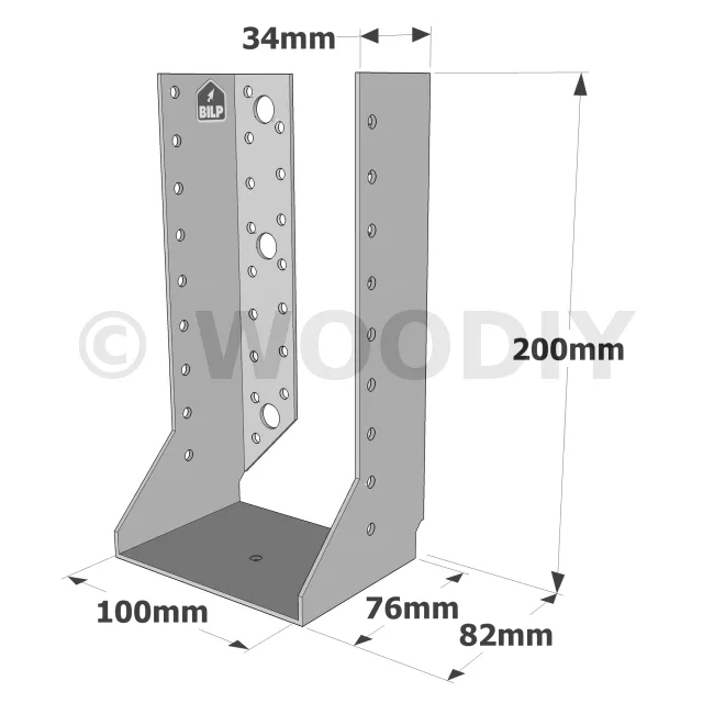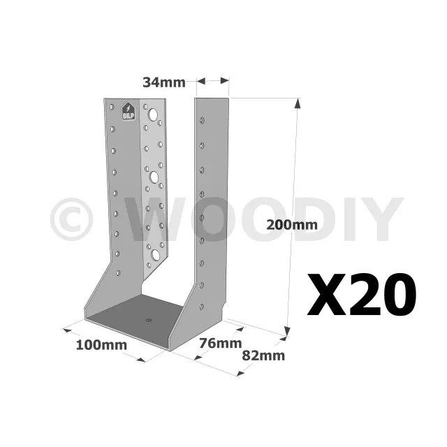 On admet une tolérance de 2 mm maximum entre l‘épaisseur du bois et la largeur du sabot. Exemple : un sabot plié à 76 mm peut porter une épaisseur de bois de 74 mm.