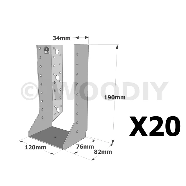 On admet une tolérance de 2 mm maximum entre l‘épaisseur du bois et la largeur du sabot. Exemple : un sabot plié à 76 mm peut porter une épaisseur de bois de 74 mm.
