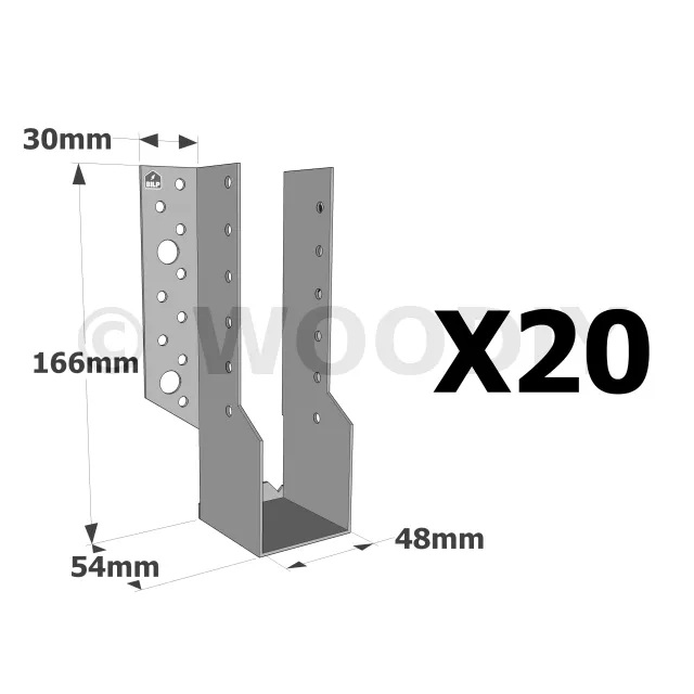 Sabots à ailes extérieures, gamme SBE ECONOMIQUE (épaisseur 1,5mm, profondeur 55mm) - Réf. SBE48/166_20