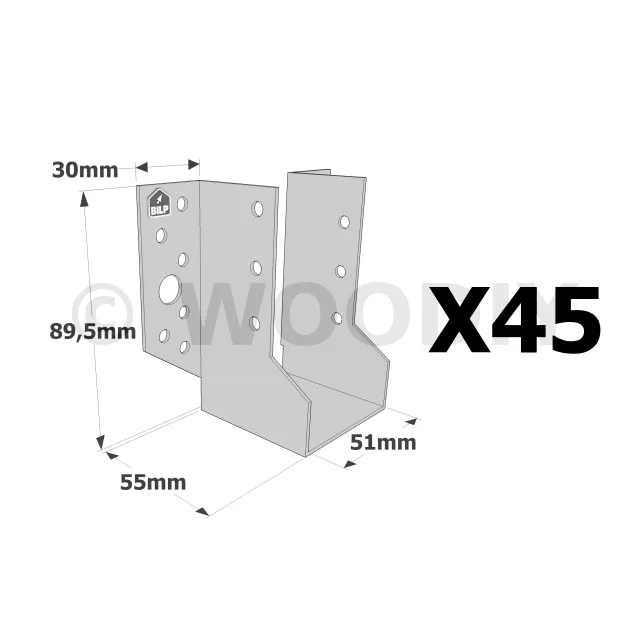 Sabots à ailes extérieures, gamme SBE ECONOMIQUE (épaisseur 1,5mm, profondeur 55mm) - Réf. SBE51/90_45