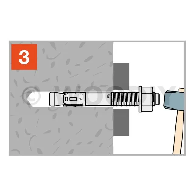 - Pose simple et rapide : écrou et rondelle prémontés et profondeur d’ancrage réduit ; Ø du filetage = Ø du perçage,