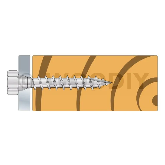 - Tête hexagonale : parfait maintien de la plaque acier sur bois grâce à sa tête large