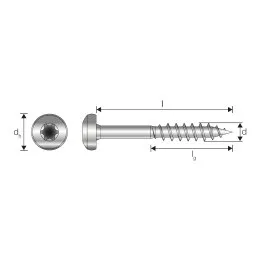 Vis bois tête bombée (fixation d’élément ACIER sur BOIS) - 4.0x30mm - INOX A2 - Réf. 77923