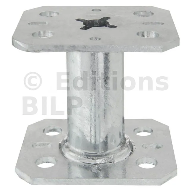 Pieds de poteau fixes PPA | • Très forte capacité de charge • Platine large et rigide • Finition galvanisée à chaud | • Hauteur non réglable • Empreinte plus importante |