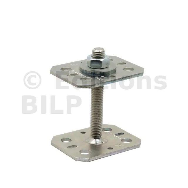 Pied de poteau réglable sous charge PPRC | • Hauteur ajustable sur chantier • Supporte des charges élevées • Installation rapide | • Prix plus élevé • Filetage exposé : protection anticorrosion à prévoir |