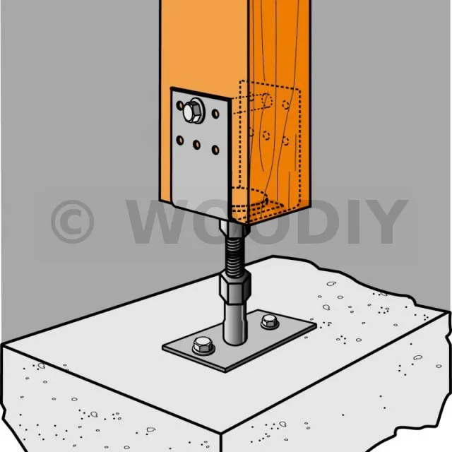 3. Fixer le pied de poteau sur le poteau