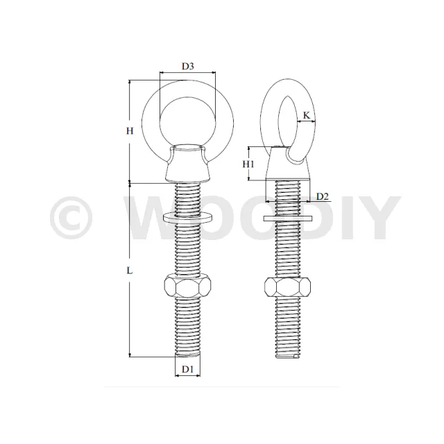 Piton à oeil fileté avec écrou - INOX
