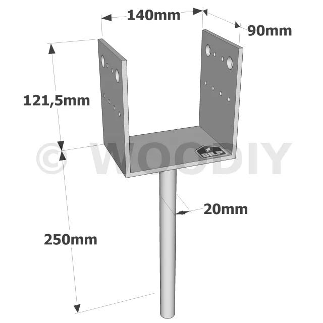 Pieds de poteau en U à sceller - Réf. PPD140/90G-R