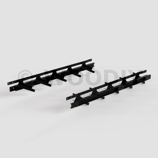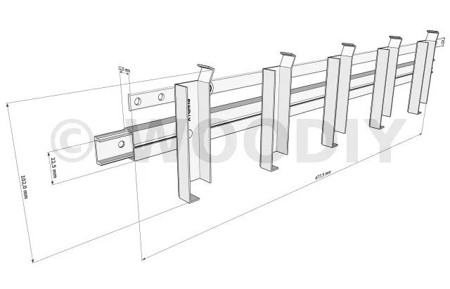 Distance entre les supports : À supposer que le mécanisme est fixé entre deux poutres, la distance entre ces deux poutres doit être égale à la longueur des lames + 35mm : 2 X 15mm (largeur du corps de mécanisme) + 5mm de jeu.