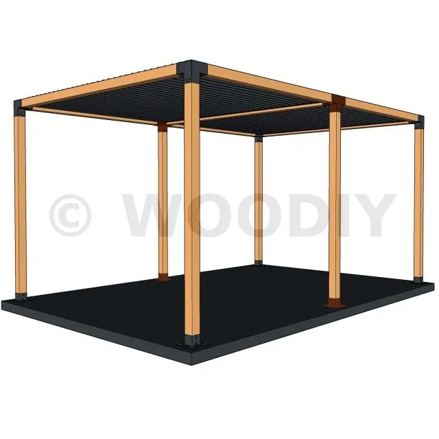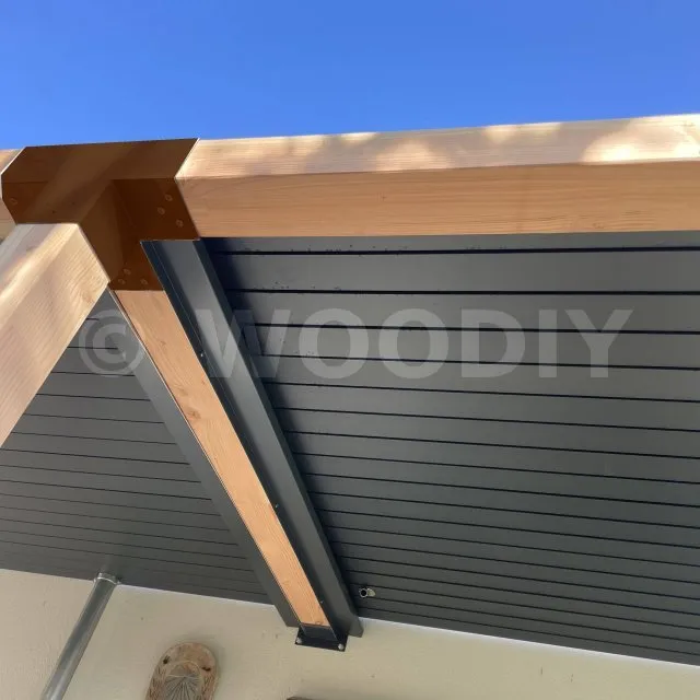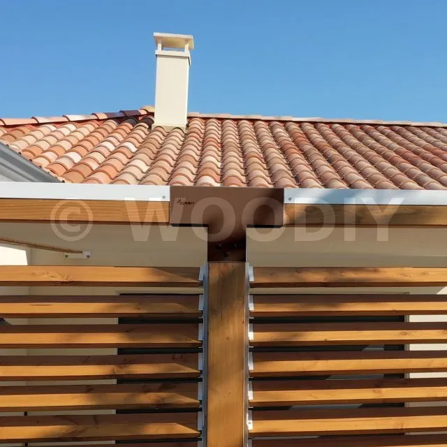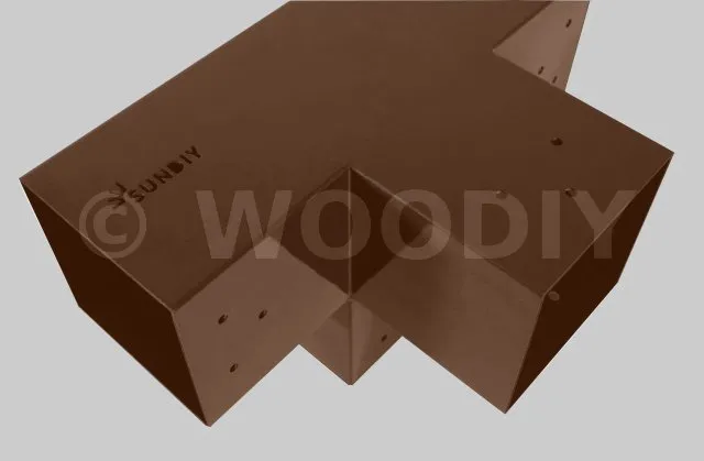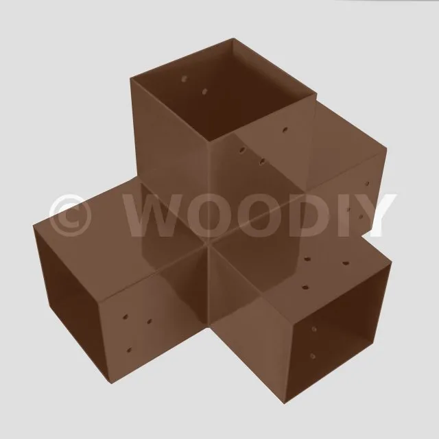 Il permet de raccorder une poutre de 90x90mm perpendiculairement à un chevron de 90x90mm, le tout étant supporté par un poteau vertical de 90x90mm.